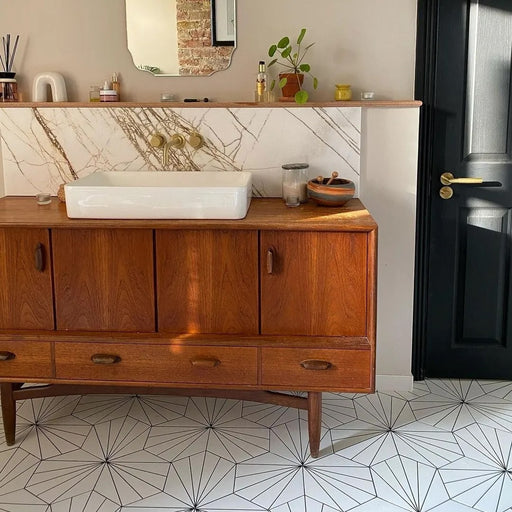 Unsere Astra-Fliese ist von der Vergangenheit inspiriert, fängt ein beliebtes Enkaustikmuster ein und bringt es mit seinen klaren Farben und dem de...