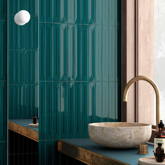 Viceroy ist eine auffällige Kollektion, die aus Basisfliesen mit dazu passenden 3D-Dekorfliesen besteht und in einigen wunderschönen Farben angeboten wird, darunter einige mit einer auffälligen reflektierenden Glanzglasur.